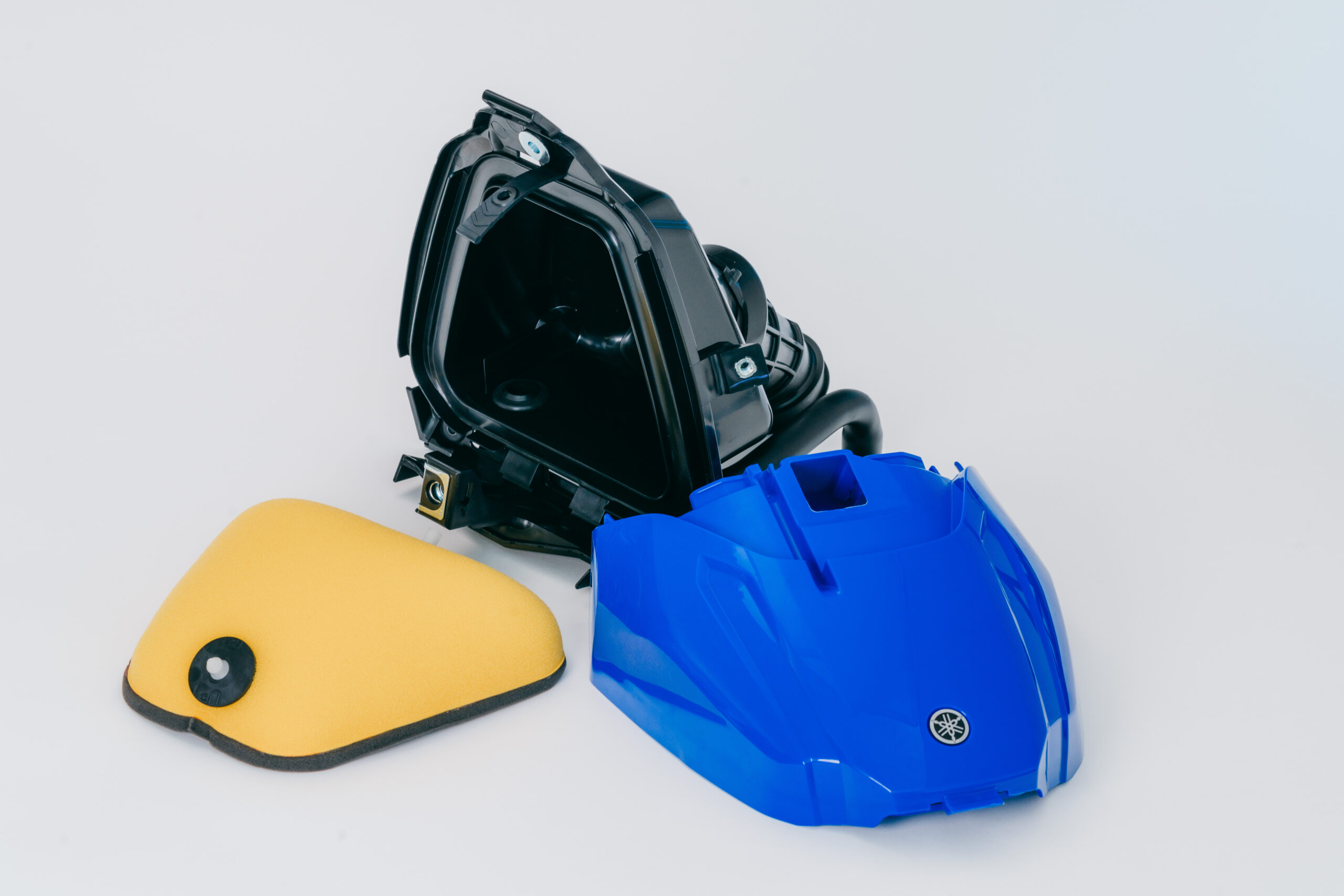 新YZ450Fにおいて 新構造エアクリーナーASSYを開発し、軽量化・コンパクト化・エンジン性能向上に